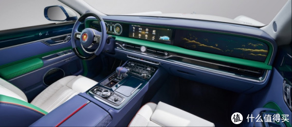 国礼座舱运用大漆、晕金、细木镶嵌等工艺。首发版以“梅、兰、竹、菊”为主题,通过非遗大漆+晕金工艺,展现君子之风,文化之力,寓意圆融通达;国宾版以“江、河、湖、海”为主题,通过细木镶嵌工艺,展现祖国山河的壮丽自然风貌;座椅脊背上,采用刺绣工艺,一针一线,一穿一勾,以线为墨,以针做笔,展现梅、兰、竹、菊四君子,意如其人,栋梁之才;传承红旗经典铺首衔环方向盘,向上拨动金属环就可以控制鸣笛,寓意守卫安全:旋钮侧面、座椅靠背以“万福纹理”进行萦绕寓意和谐、万福平安。